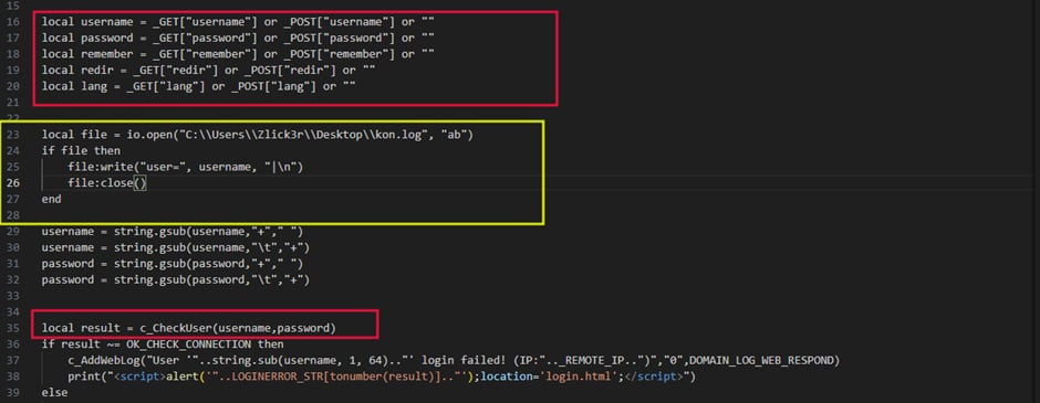 Mình sẽ kiểm tra trong file loginok.html này nó đang làm gì. Dòng 16-20 sẽ nhận input của mình nhập vào bởi tham số tương ứng qua các phương thức GET/POST, sau khi nhận sẽ đến dòng 35 sẽ check tài khoản có hợp lệ không.