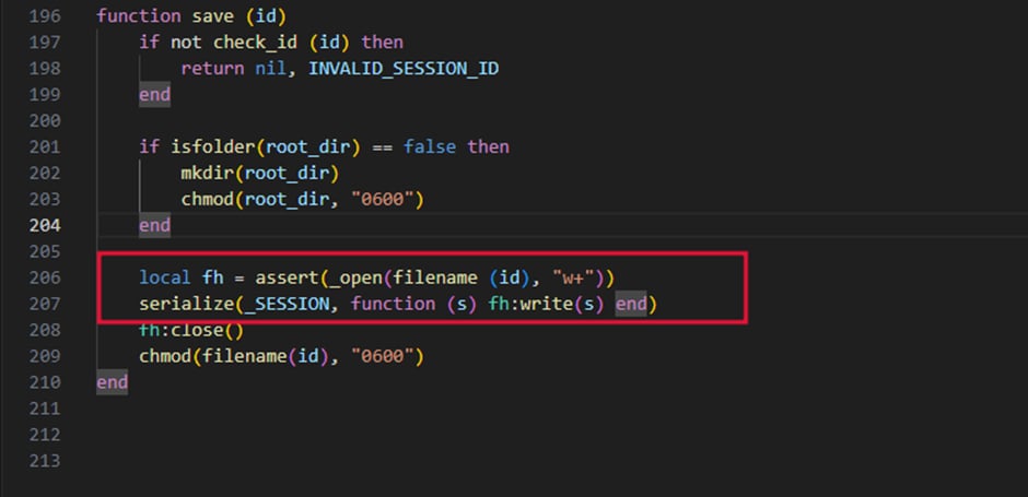 Đi vào file SessionModule.lua, ta thấy hàm save(id) nhận giá trị là UID được tạo, nó sẽ dùng UID để tạo 1 file là