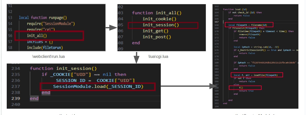 Ghi file thành công nhưng để trigger file thì sao?? Câu trả lời là sau khi login thì dùng bất kì chức năng nào thì cũng có thể trigger được payload. Mỗi khi load sẽ gọi đến hàm runpage(), tiếp đến gọi đến init_session(), trong init_session() lại gọi đến SessionModule.load() và cuối cùng gọi đến loadfile() với tham số là file